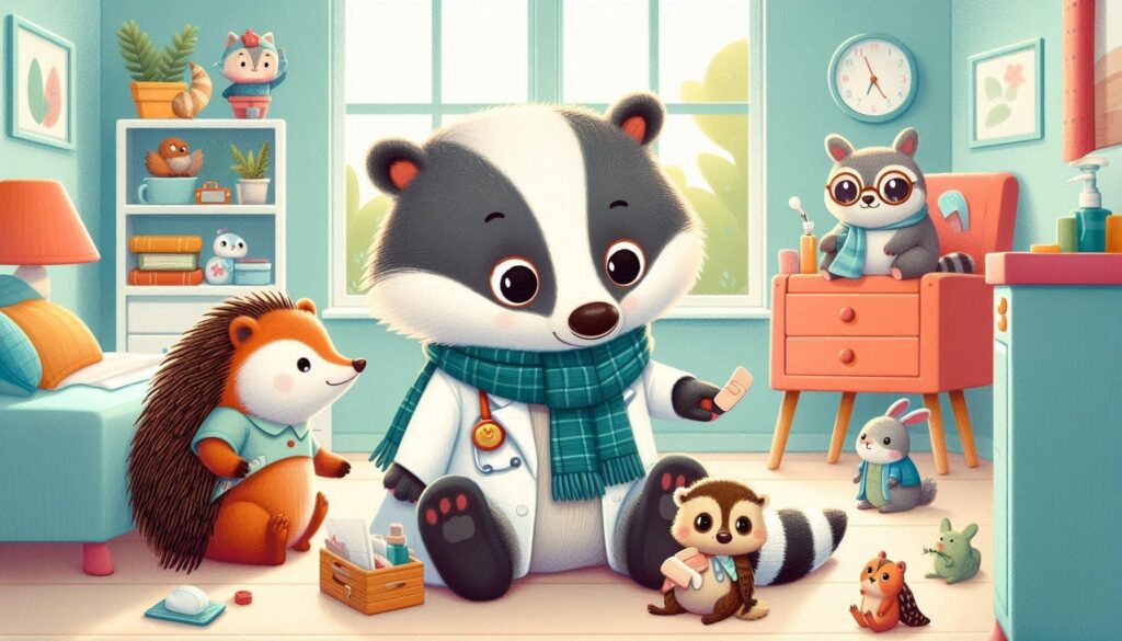 „Na, kleiner Dachs, du siehst ganz fiebrig aus! Aber keine Sorge – Fieber bedeutet, dass dein Körper tapfer kämpft. Du bist ein echter Held, Moritz.“